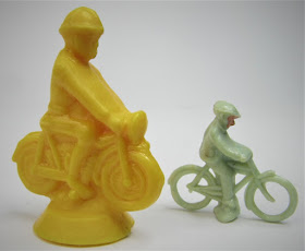 Der Vergleich mit einem Wiking Radfahrer zeigt die ungefähre Größe der Modelle. Ausserdem wirken die Polizeimotorräder doch sehr gedrungen.